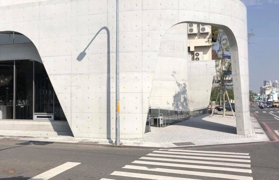 遠遠的就看到灰白色的清水模建築